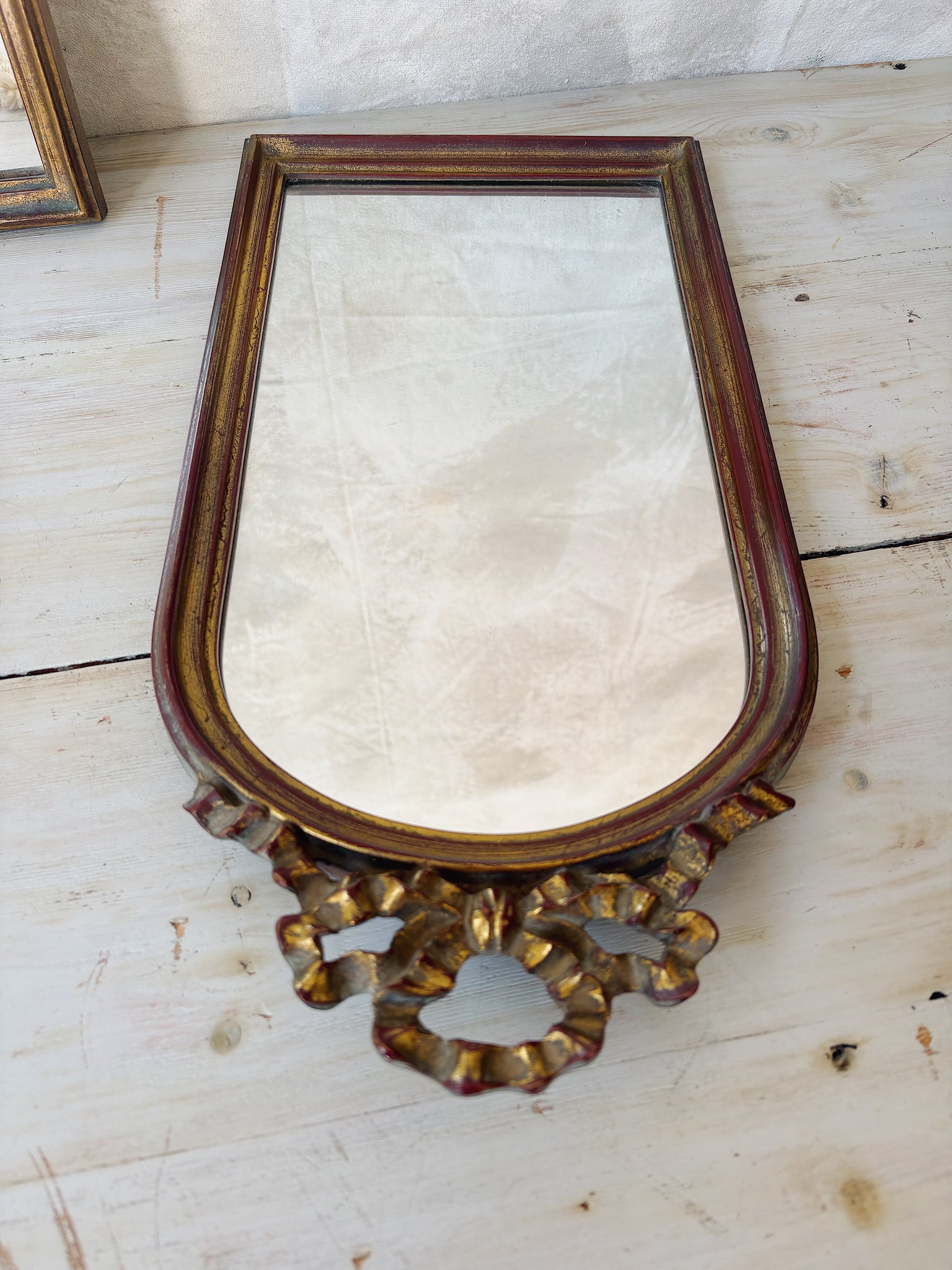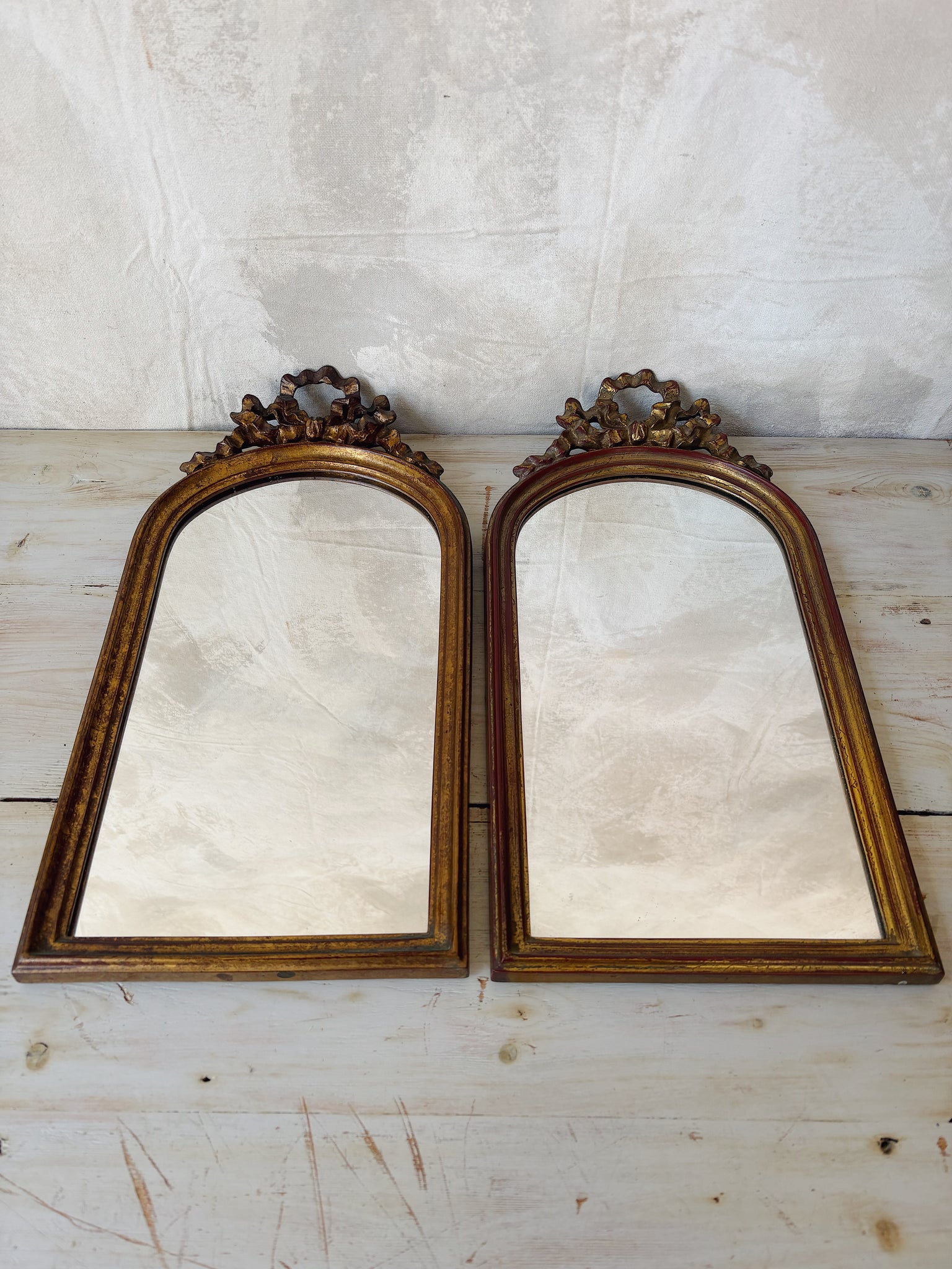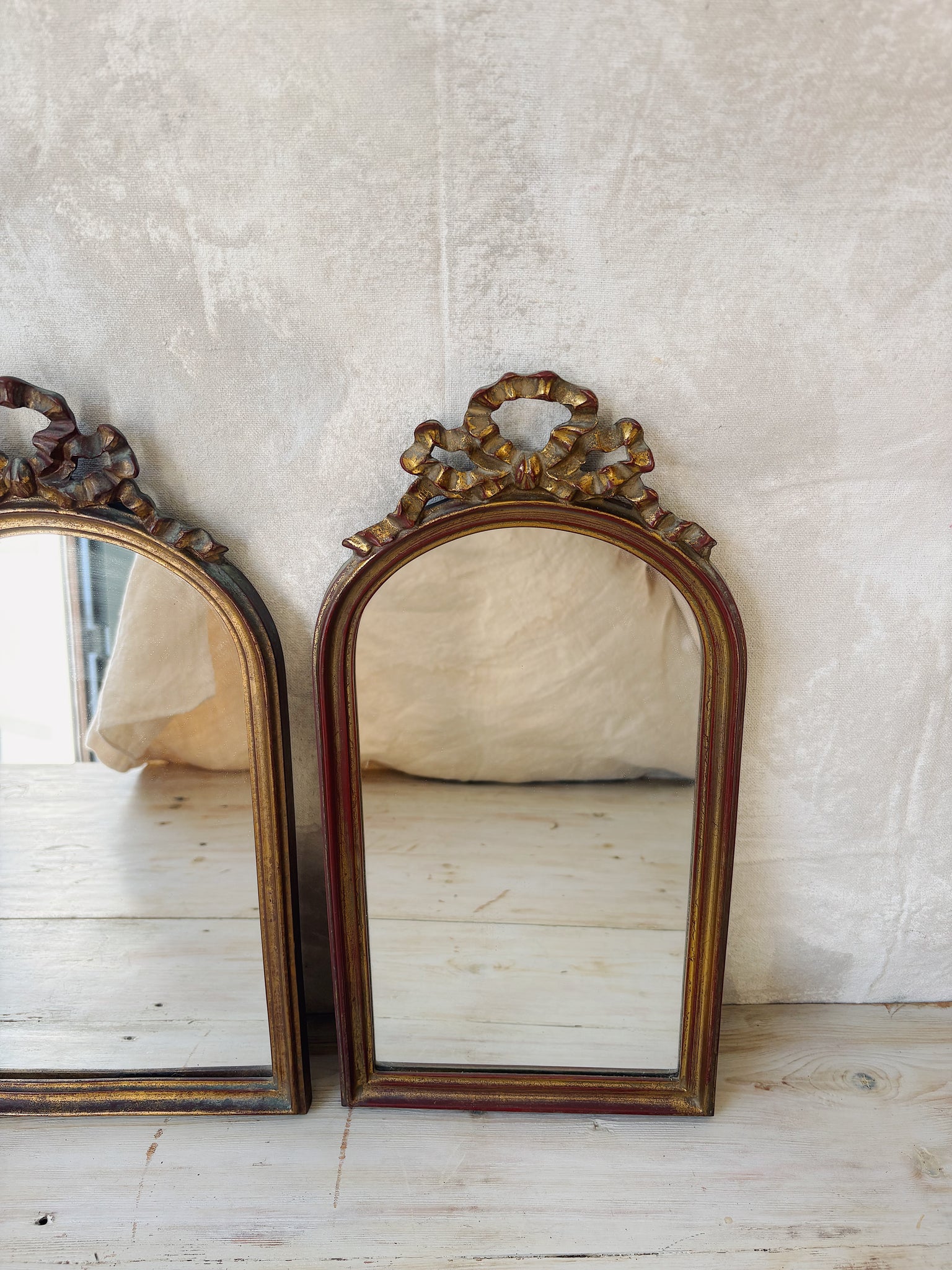 Pair of vintage Gold finished arch mirror with a lovely bow detail atop the mirror.