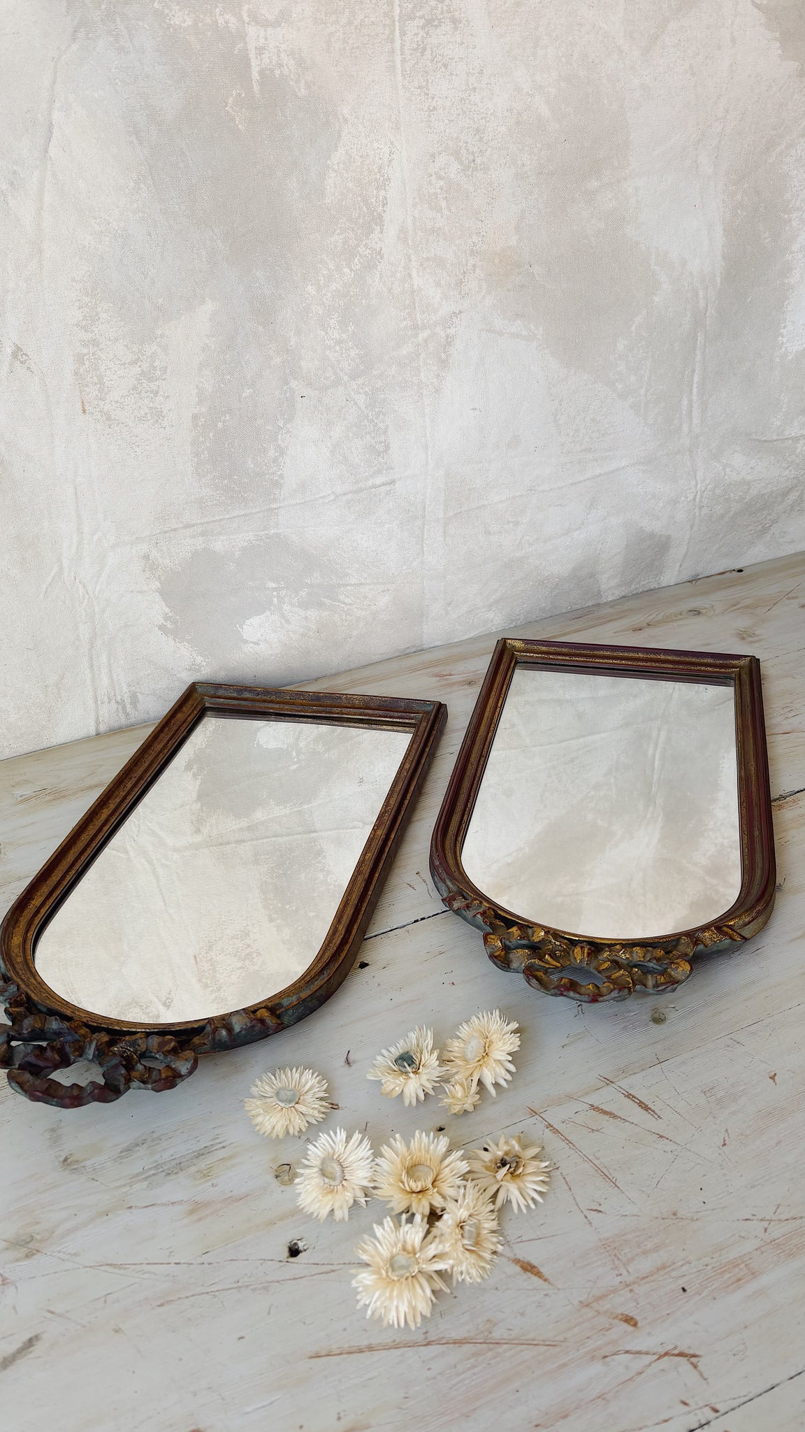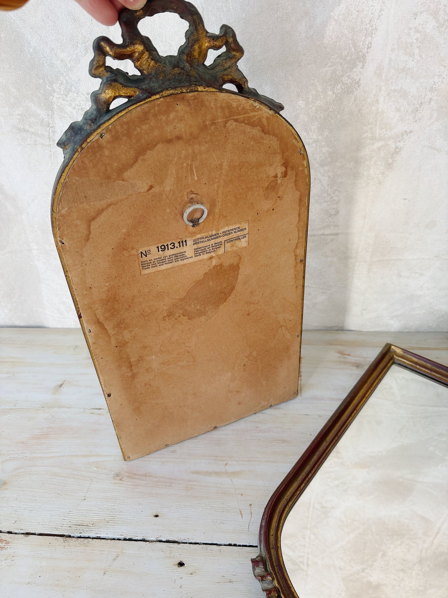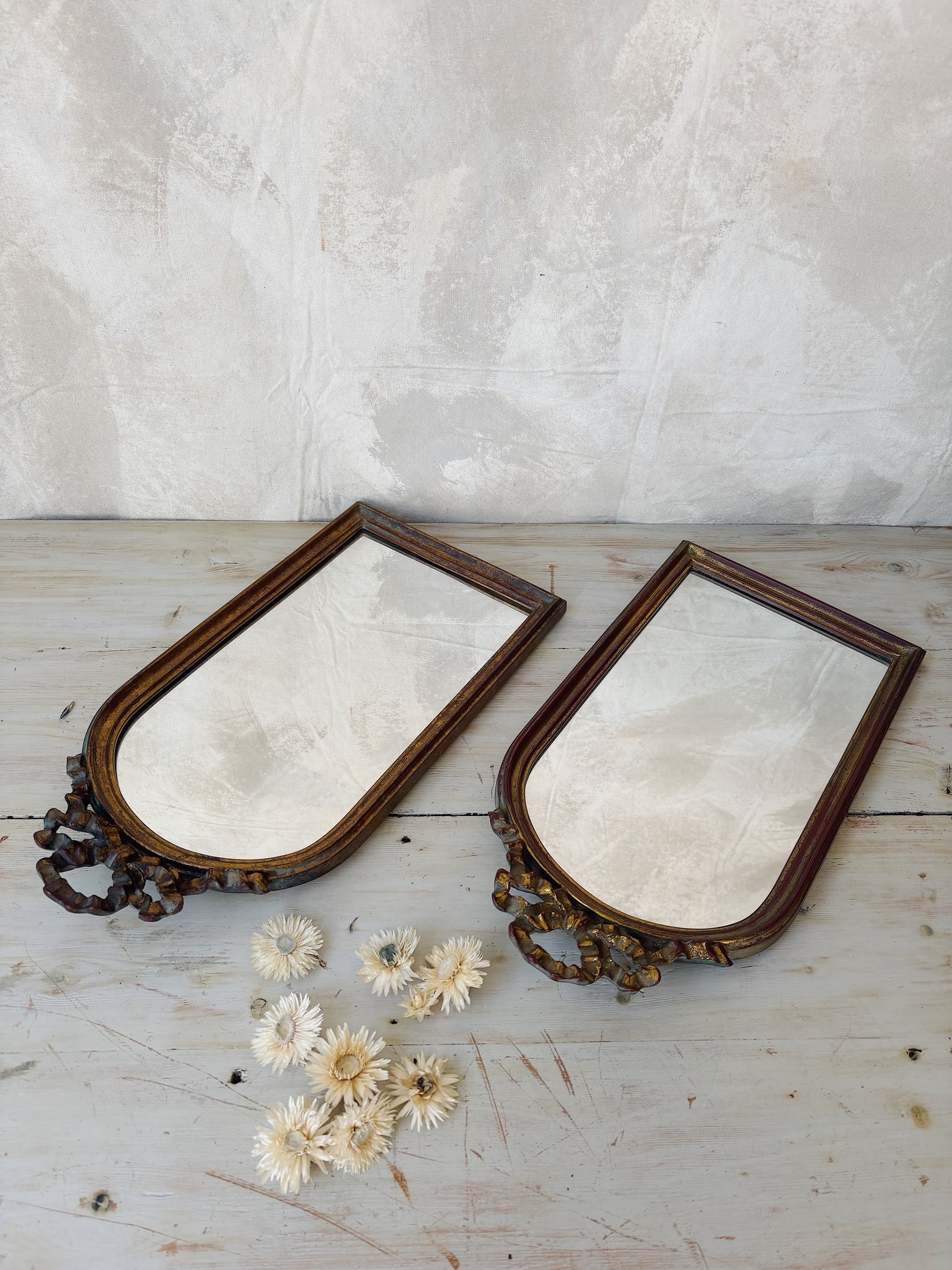 Pair of vintage Gold finished arch mirror with a lovely bow detail atop the mirror.