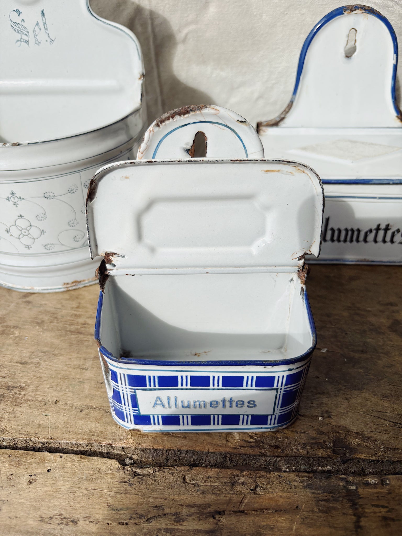 A lovely small painted enamel box with the words « allumettes » (matches)