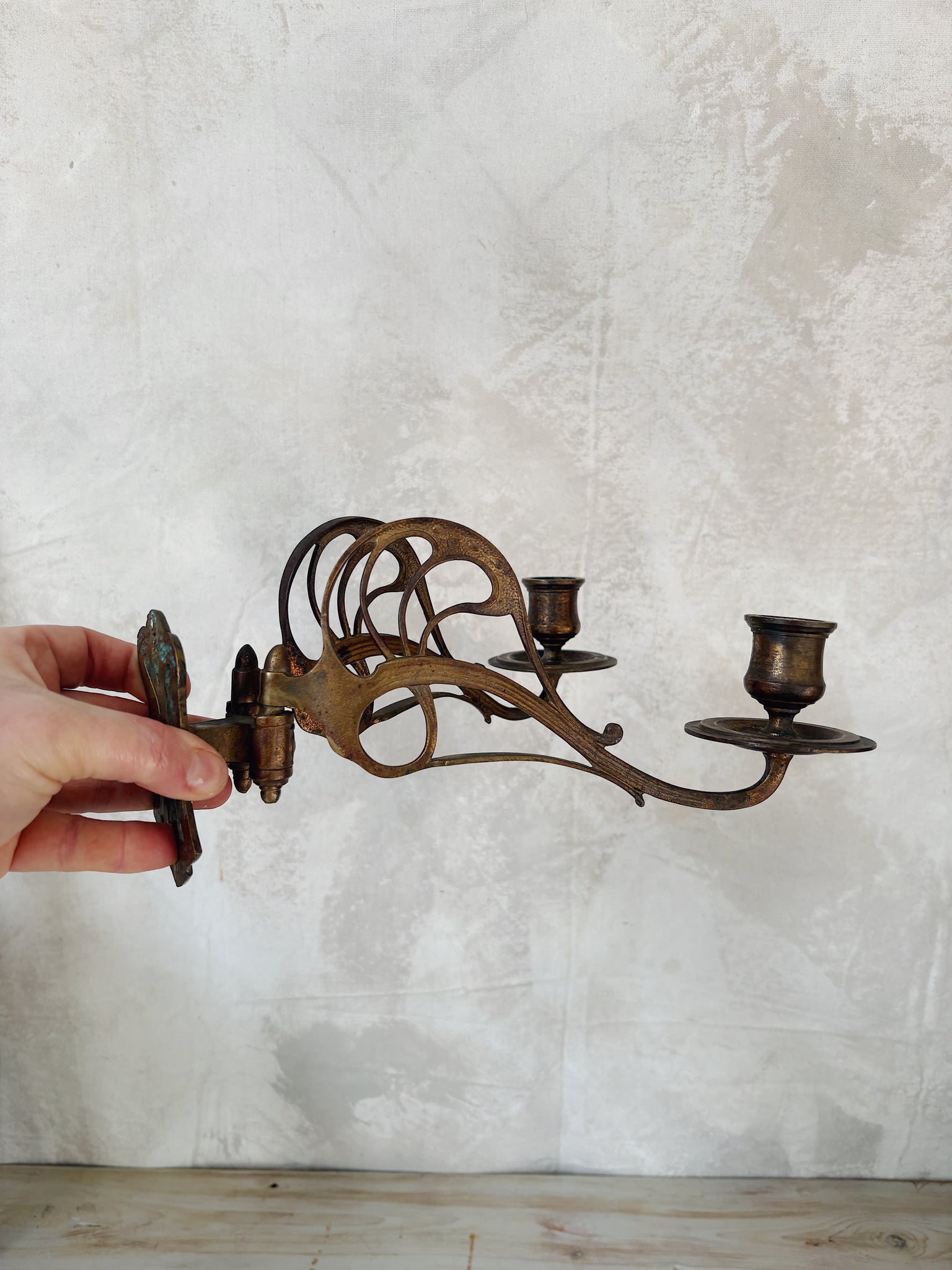 Circa 1930. The candle holder shows signs of wear and tarnish