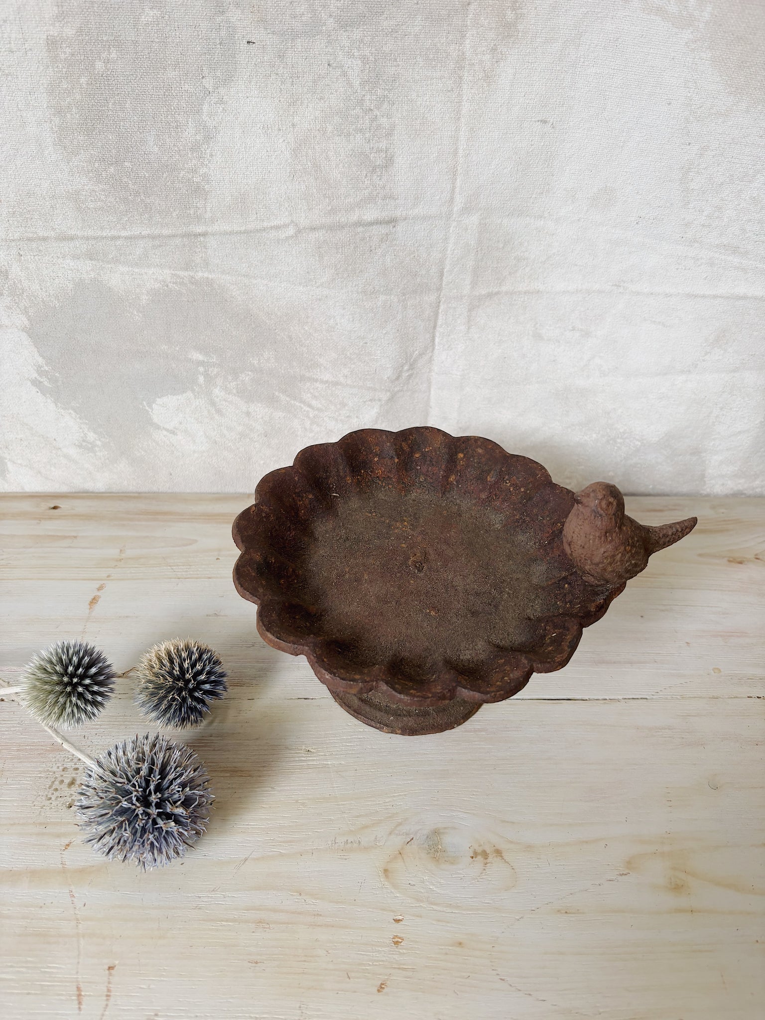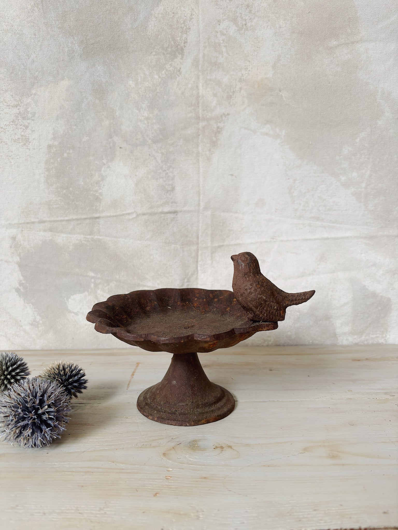A charming little bird bath or bird feeder to place atop a table or window cil